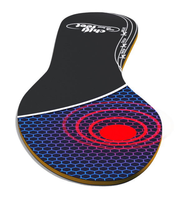 chili-feet® heated insoles convert pressure energy into heat while walking. This way, the chili-feet® works without short-lived batteries or annoying accumulators. The microfiber surface ensures comfortable wear and absorbs any sweat directly.