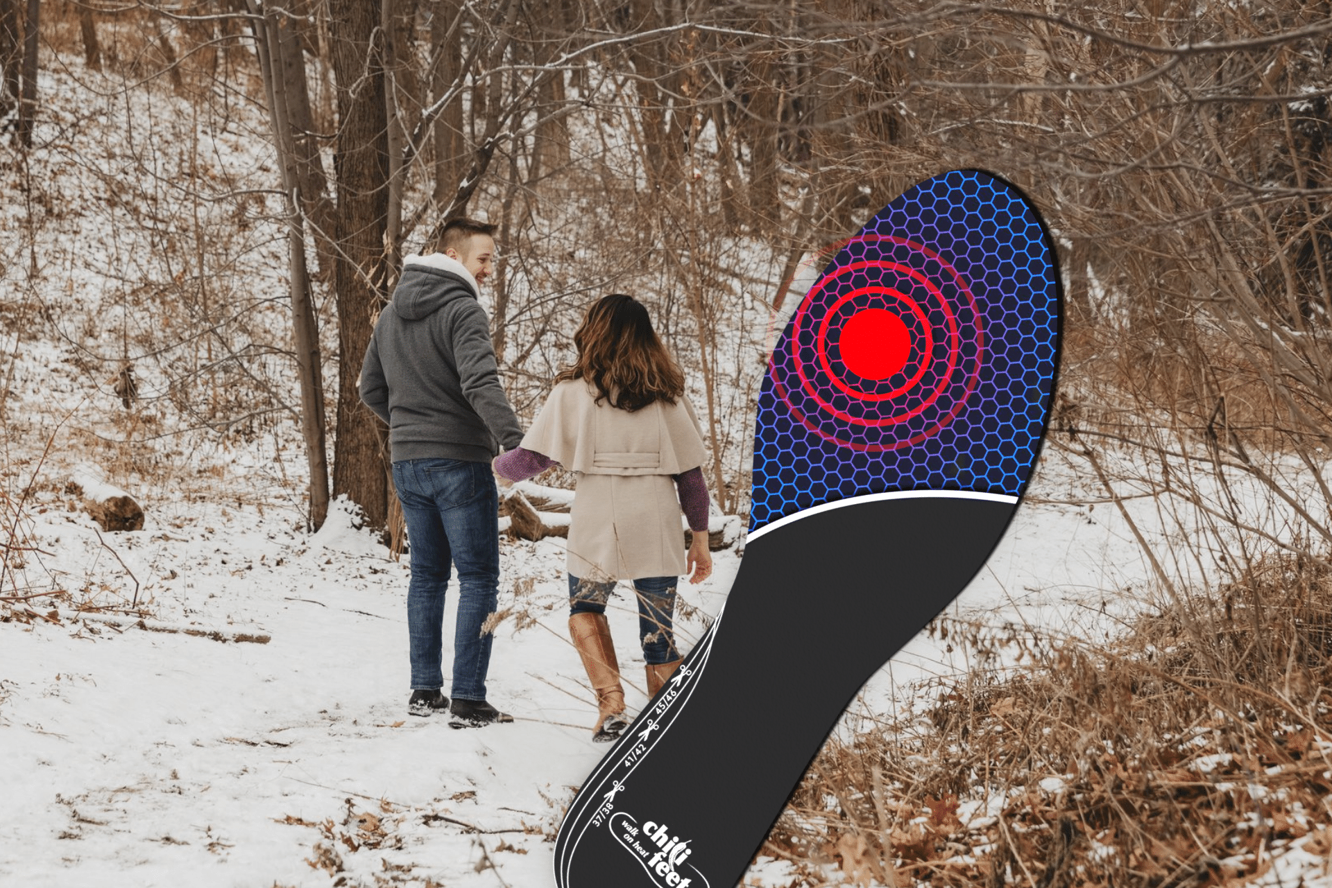 Tragen Sie chili-feet an kühlen bis kalten Tagen, um die natürliche Wärmeentwicklung durch Bewegung zu aktivieren. Die spezielle Technologie reagiert auf Druck – je mehr Sie sich bewegen, desto wohliger wird es.
